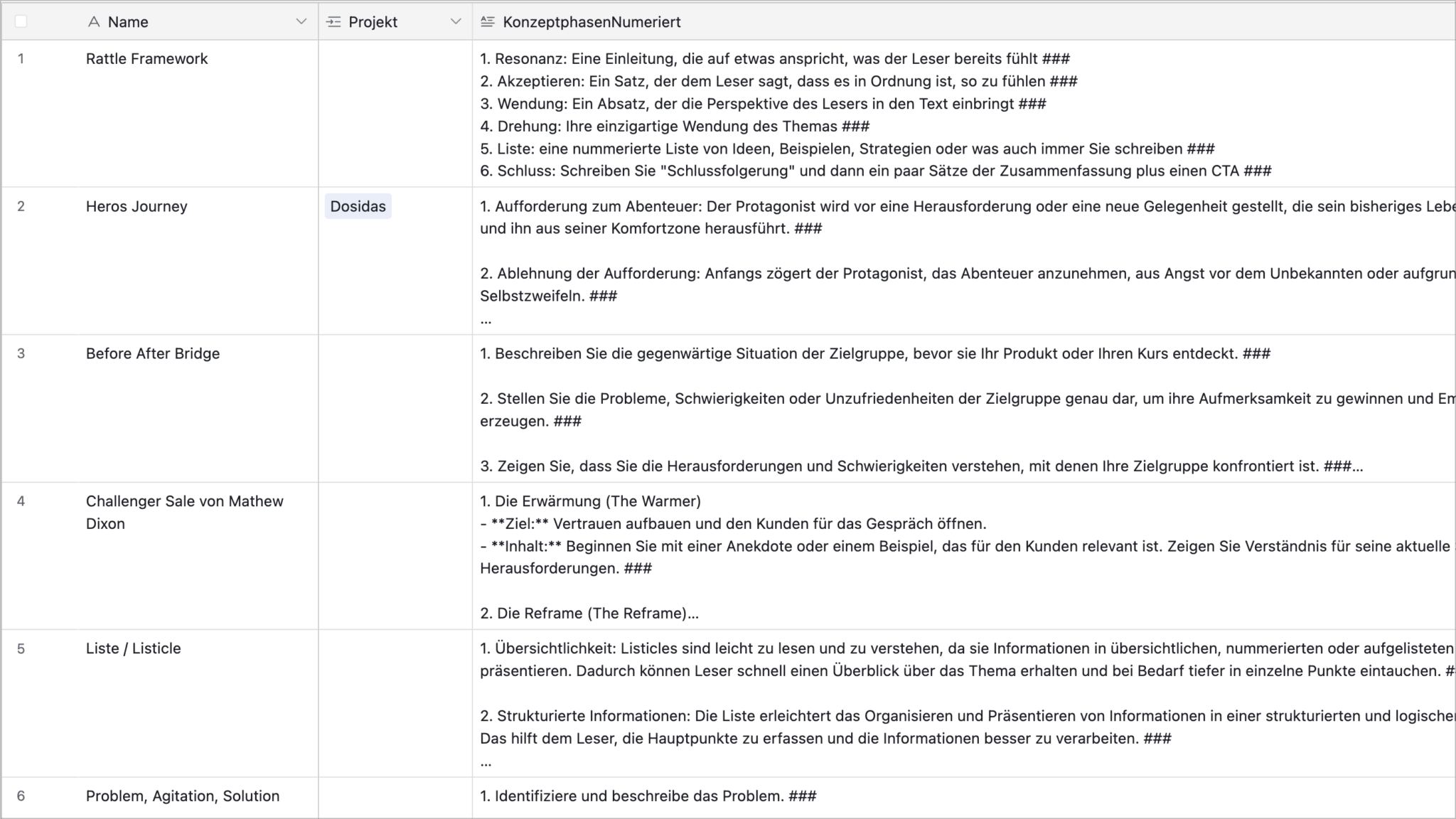 • Zielgruppen: Im JSON (zielgruppen) wird definiert, wie du beispielsweise Coaches & Berater, Content Creators oder Marketer ansprechen kannst.